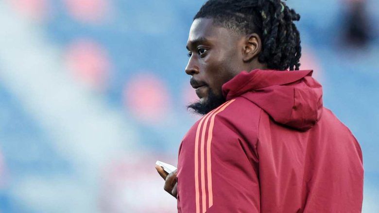 Roma’s Manu Konè on the pitch prior the Italian Serie A soccer match Bologna FC vs AS Roma at Renato Dall’Ara stadium in Bologna, Italy, 12 January 2025. ANSA /SERENA CAMPANINI